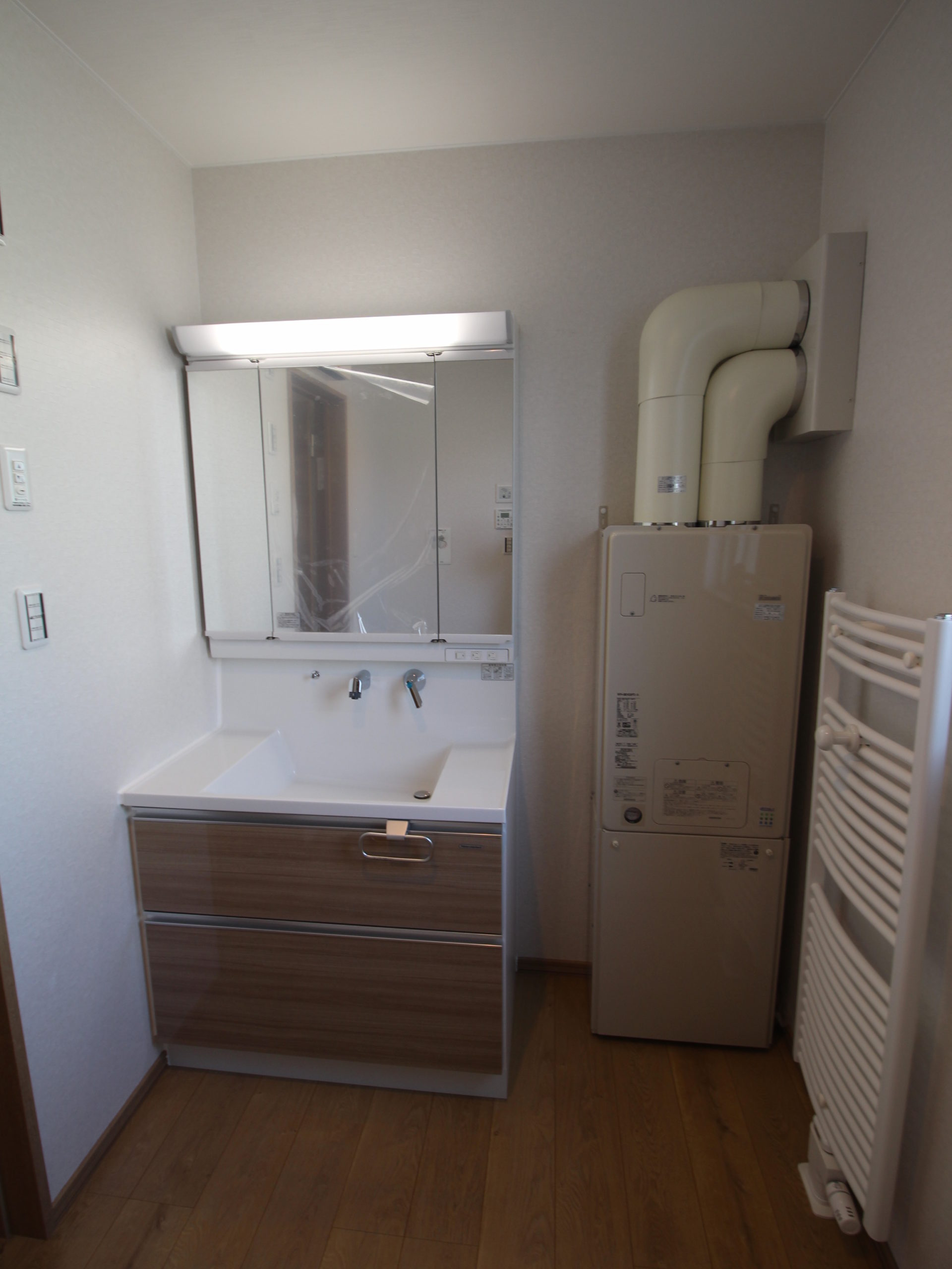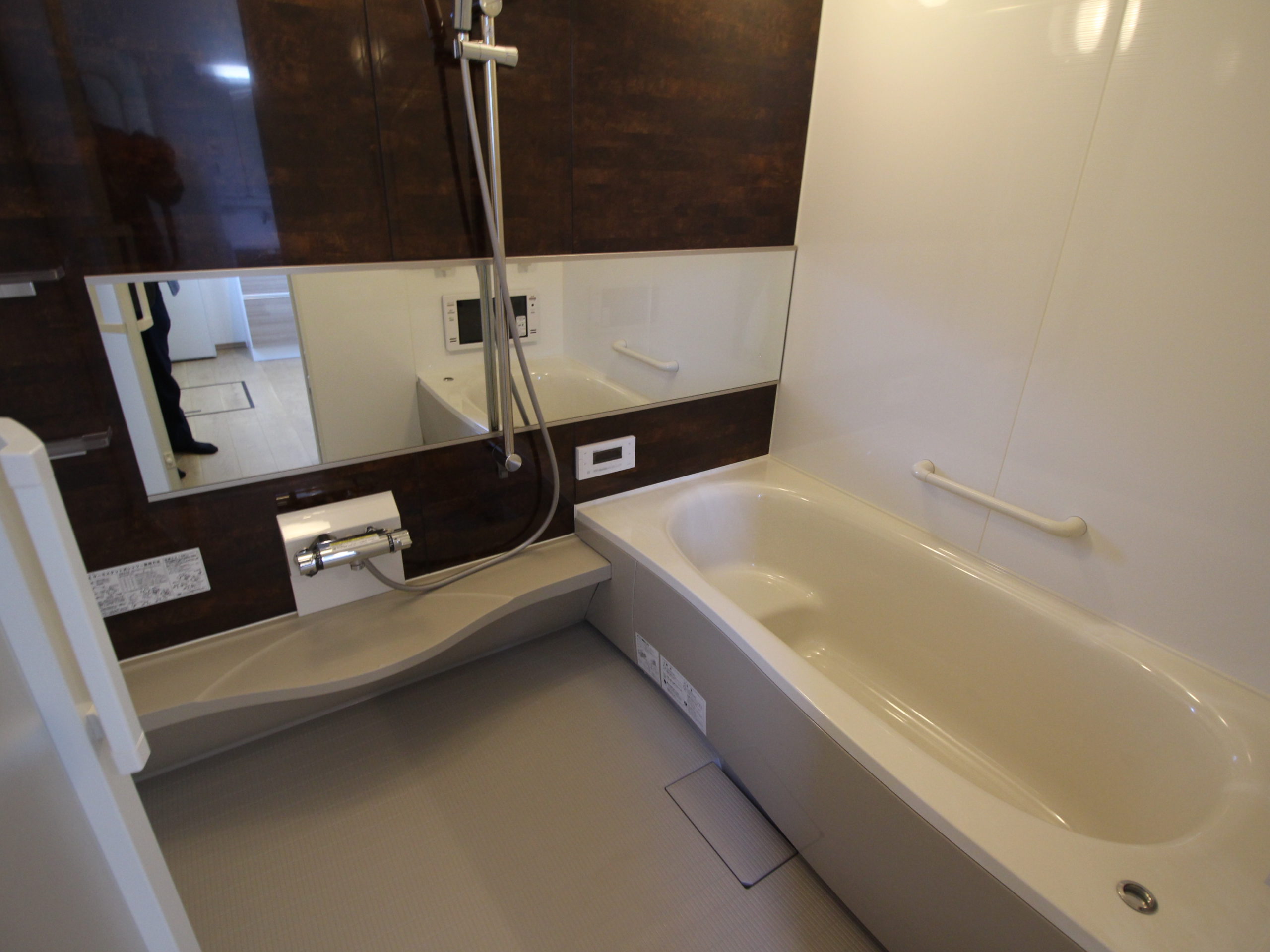 - 一坪バス、追い炊き機能、トイレ2か所、浴室乾燥機、食器洗浄機、温水洗浄便座、シャワー付き洗面化粧台、2口以上コンロ、システムキッチン、ダウンライト、照明器具