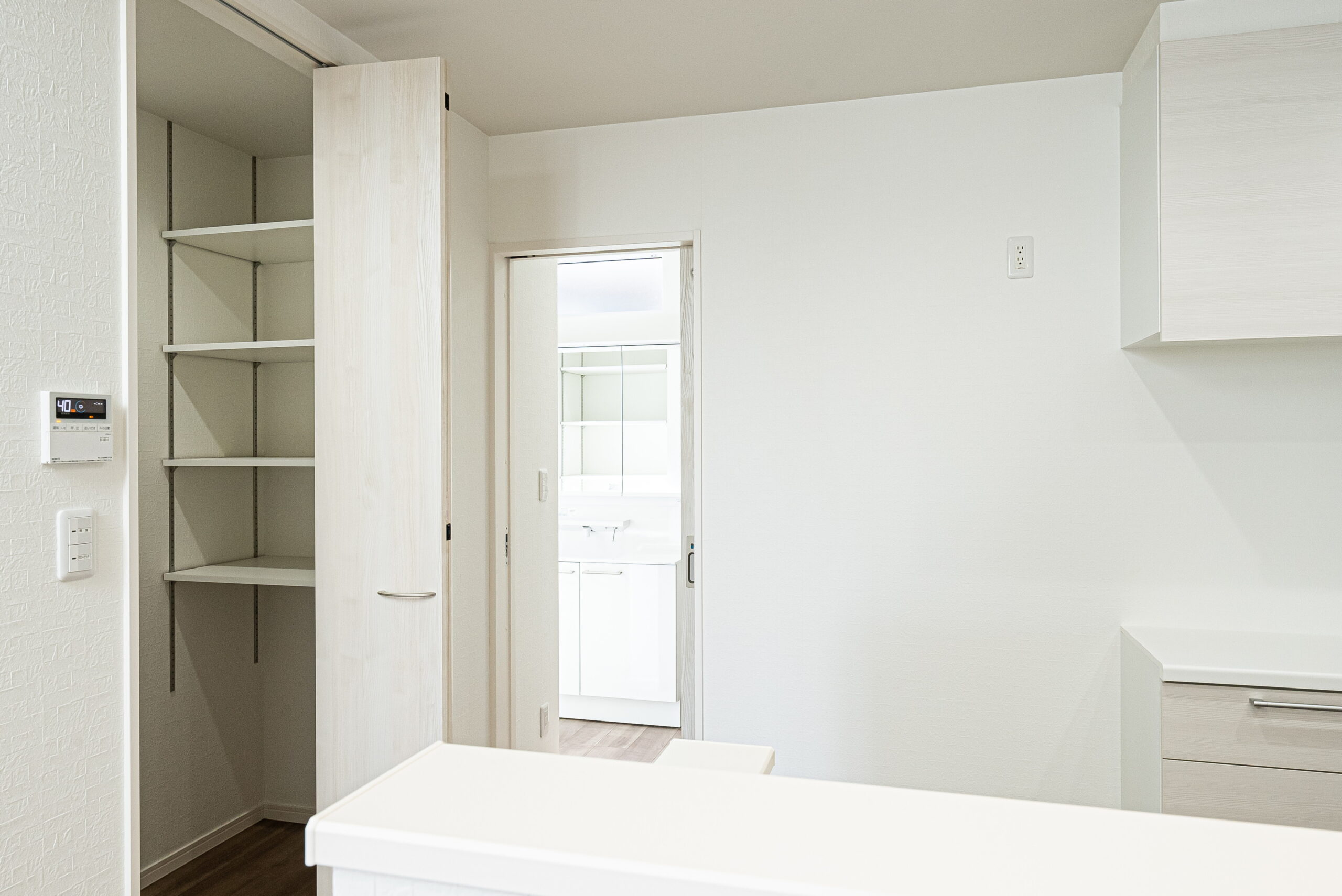 - スマートキー、一坪バス、追い炊き機能、省エネ給湯器、トイレ2か所、タンクレストイレ、温水洗浄便座、シャワー付き洗面化粧台、2口以上コンロ、対面式システムキッチン、食器洗浄機、パントリー、ウォークインクローゼット、ダウンライト、照明器具